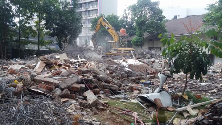 - Pembersihan puing-puing sisa bangunan
